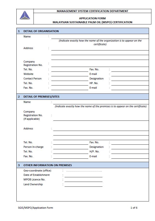 SGIS-MSPO Certification Application Form